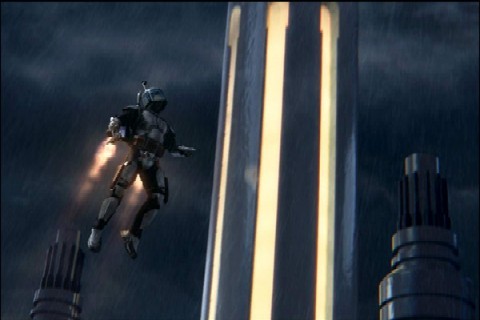 Après un départ moyen, la seconde trilogie prend ici son envol. De l'action, de l'action, toujours de l'action et un peu d'amour, tel est le cocktail proposé par "L'Attaque des Clones". Même si le scénario qui se veut complexe et plein d'intrigues politiques ne présente pas un grand intérêt, le spectateur n'a guère le temps de s'arrêter sur ces petits défauts. Les effets spéciaux sont absolument magnifiques, si bien qu'on se demande s'il s'agit bien d'effets spéciaux. Seule la bataille finale possède un côté un peu artificiel qui fait plus penser à un film d'animation qu'à un film avec de vrais acteurs. Et puis, ce film possède la scène la plus réjouissante de la saga. Quel bonheur de voir Yoda dégainer son petit sabre laser et de s'en servir avec maestria ! Vivement l'Épisode III ! |