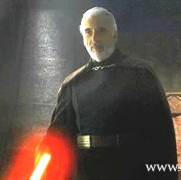 Count Dooku est un beau fouteur de merde puisqu'il réussit à déclencher un guerre intergalactique. Balèze, le vieux ! Il faut dire qu'il est l'ancien padawan de Yoda lui-même. Le combat à la fin d'Épisode II prouve d'ailleurs que l'élève est largement au niveau du maître. Cependant, il a plutôt mal tourné puisqu'il passe du côté des Siths, chez qui il porte le joli nom de Darth Tyrannus. En tout cas, Count Dooku est la preuve vivante que la pratique des arts Jedi conservent, car malgré son âge avancé, il se débarrasse avec une facilité déconcertante de deux beaux jeunes gaillards que sont Anakin Skywalker et Obi-Wan Kenobi. Alors, la Force plus forte que la DHEA ? Pas sûr parce que la deuxième confrontation avec Anakin se termine par une victoire de la Force par une courte tête... |